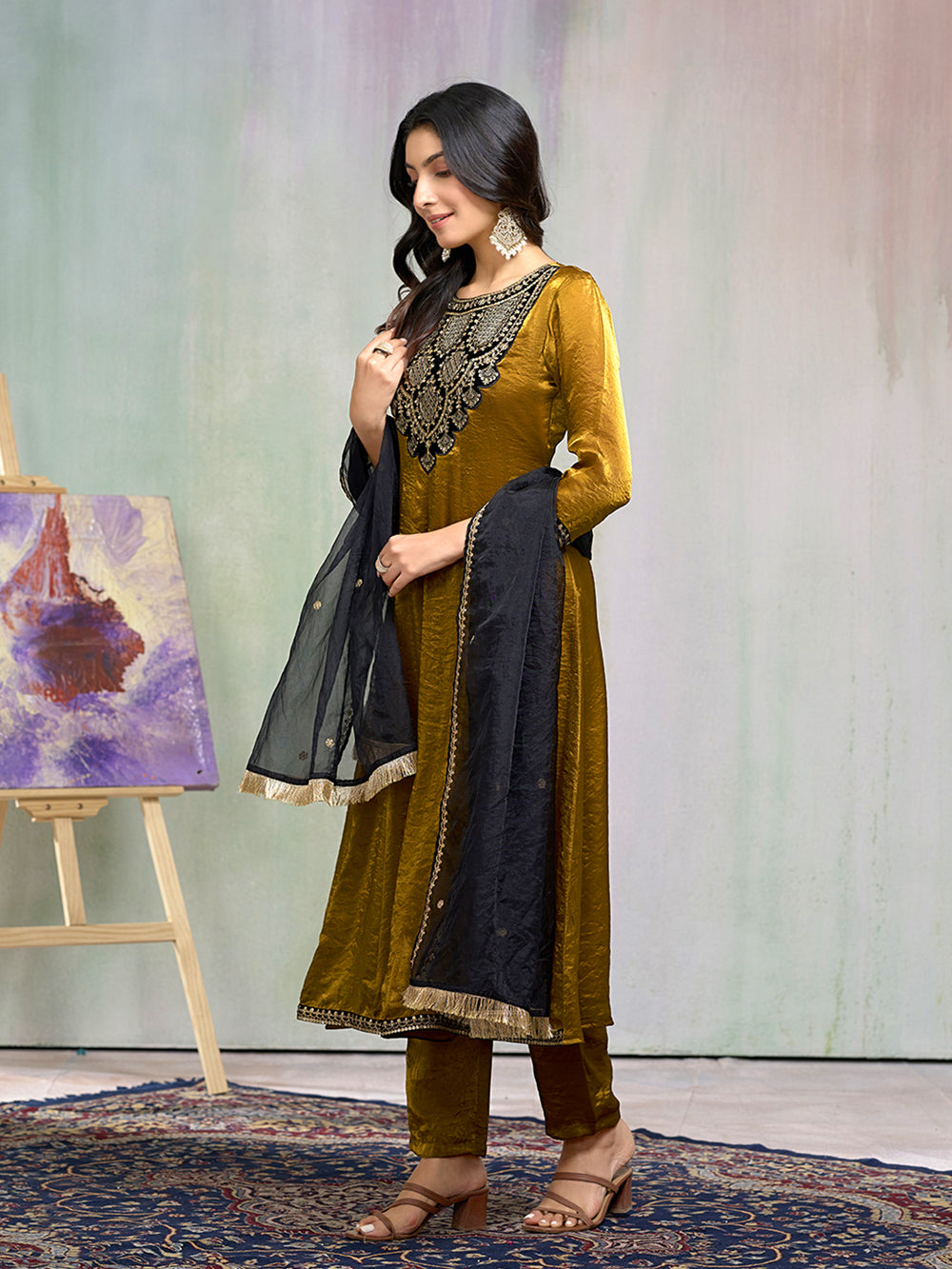 Make a bold statement in this mustard yellow embroidered set and embrace a blend of tradition and modern elegance!