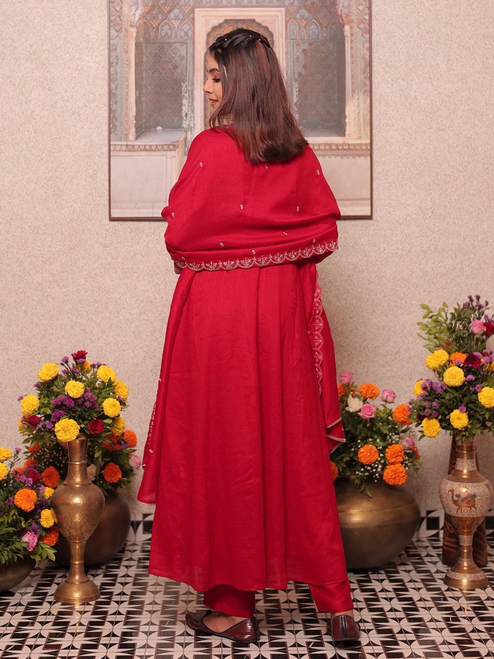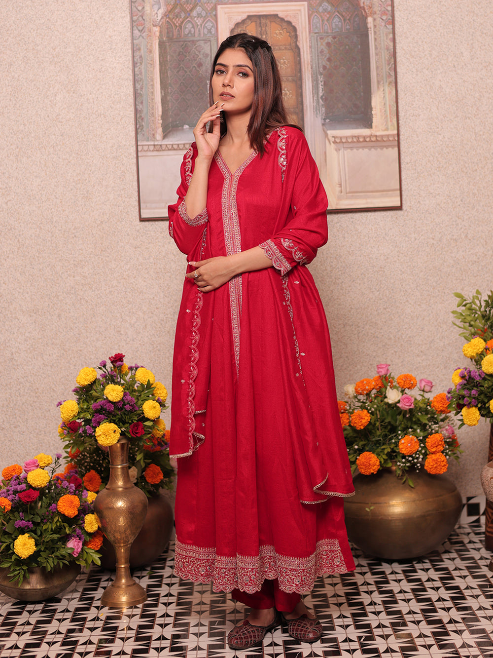 Embrace the beauty of tradition with this stunning red embroidered kurta set, designed to make you shine at your next special occasion!